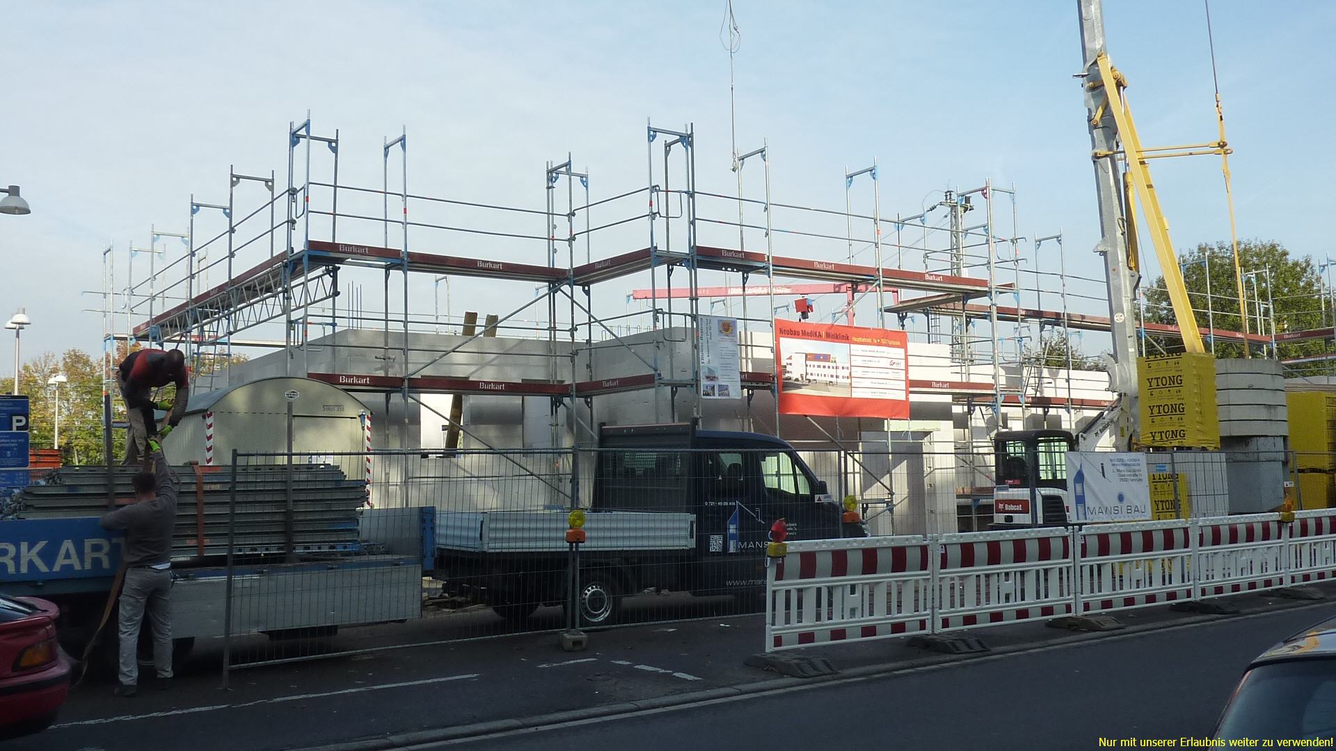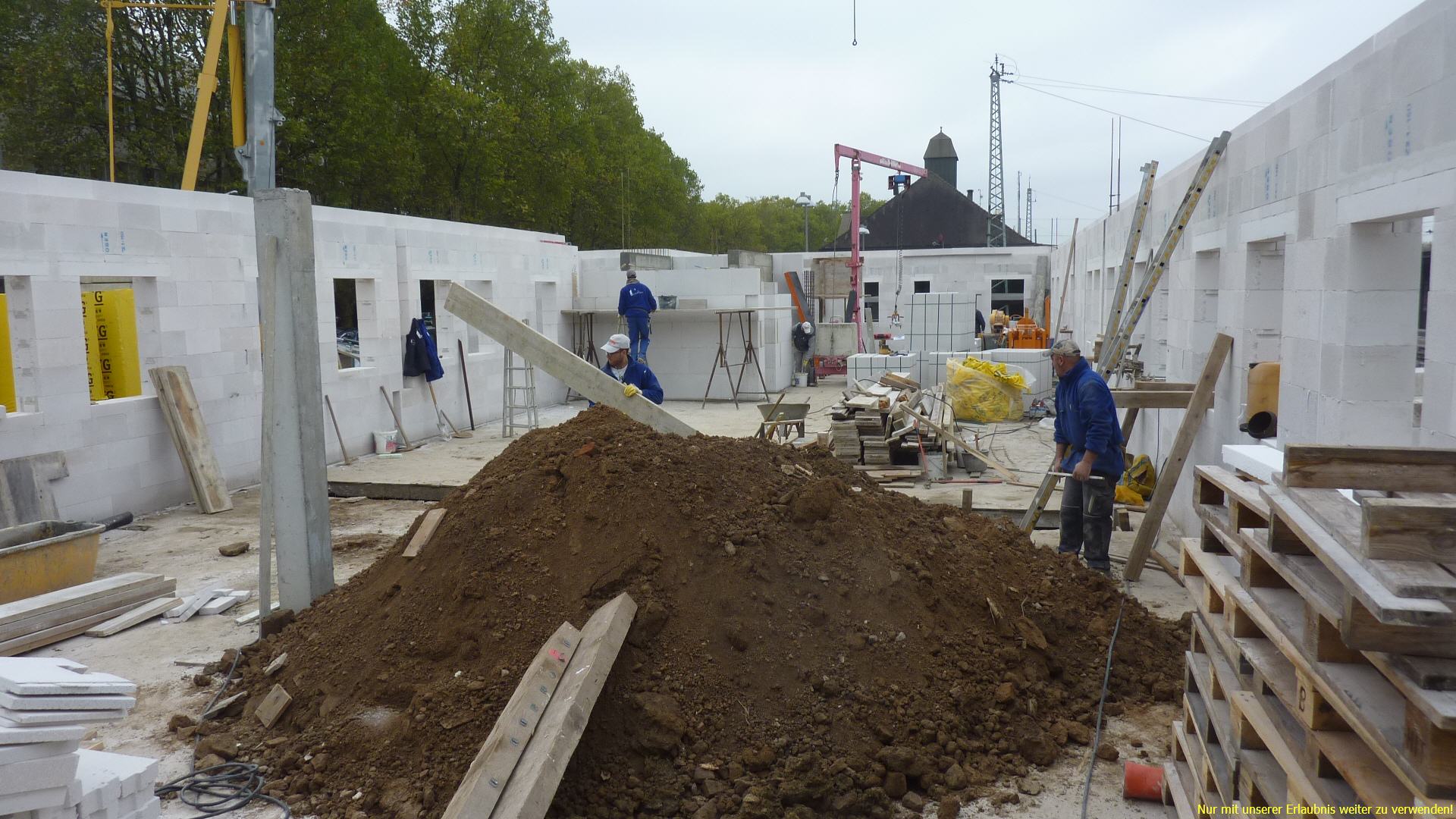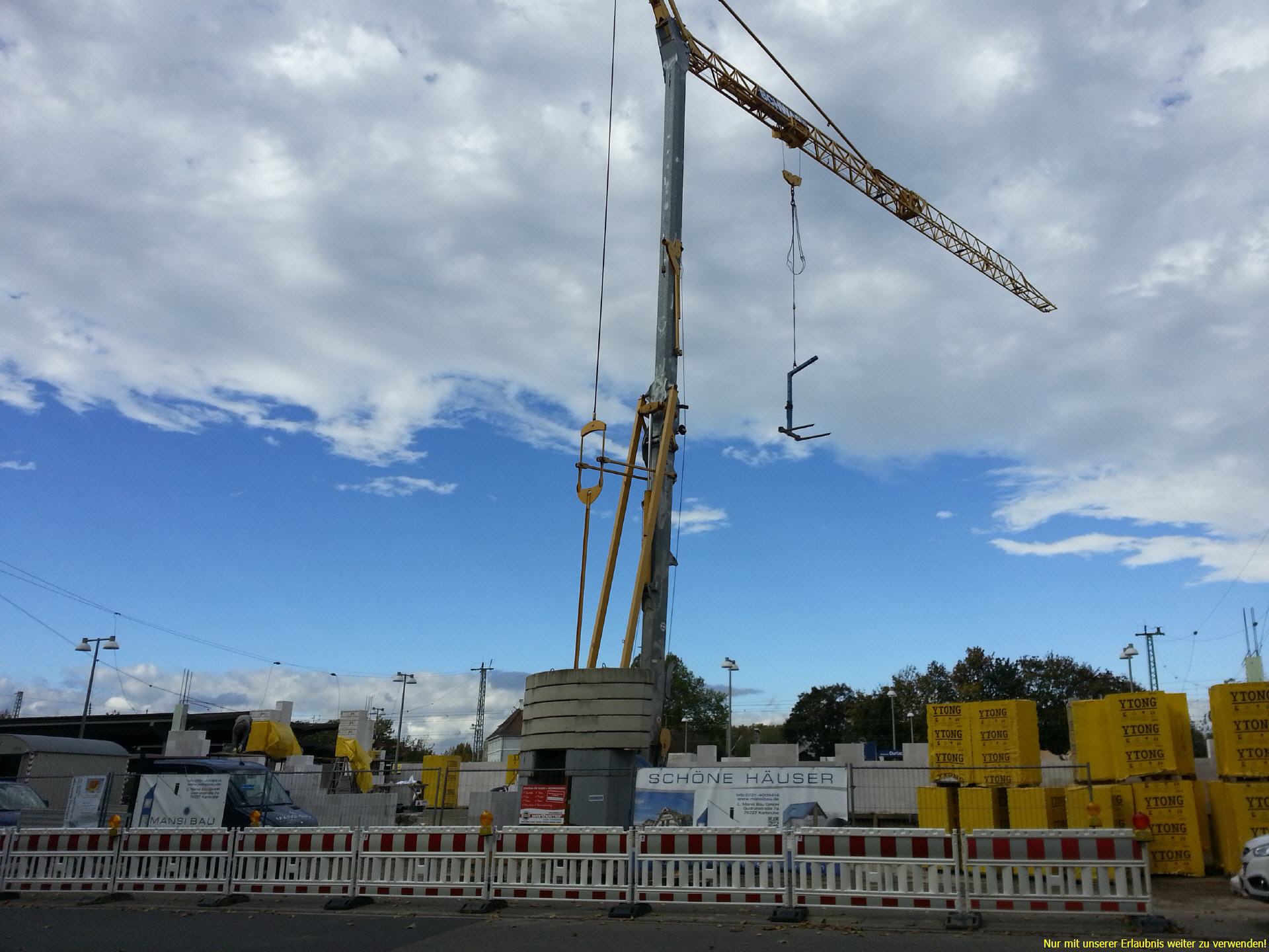 21.10.2014 - Kranaufstellung und Beginn Maurerarbeiten der Aussenwände |