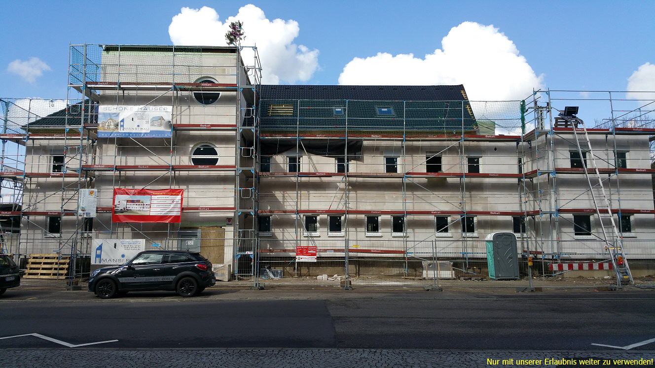 27.02.2015 - Richtfest wurde zünftig im trockenem Dachgeschoss gefeiert - die Arbeit im Haus ging zügig voran - Rohinstallation Heizung-Saniär-Elekro einschl. aufwendige Installationen für die Ärzte fertig. Fenster eingebaut - Anfang März beginnt der Innenputz. |